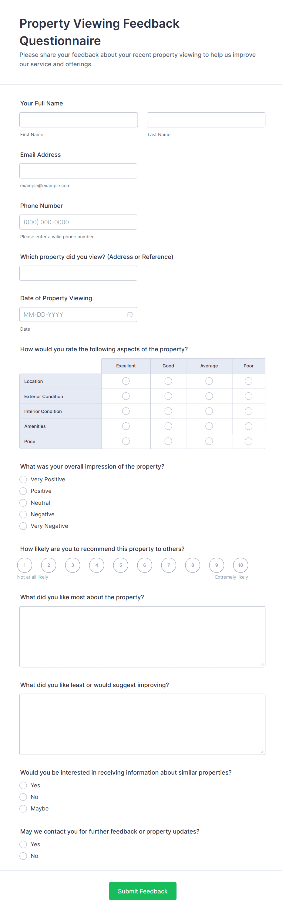 Real Estate Feedback Forms