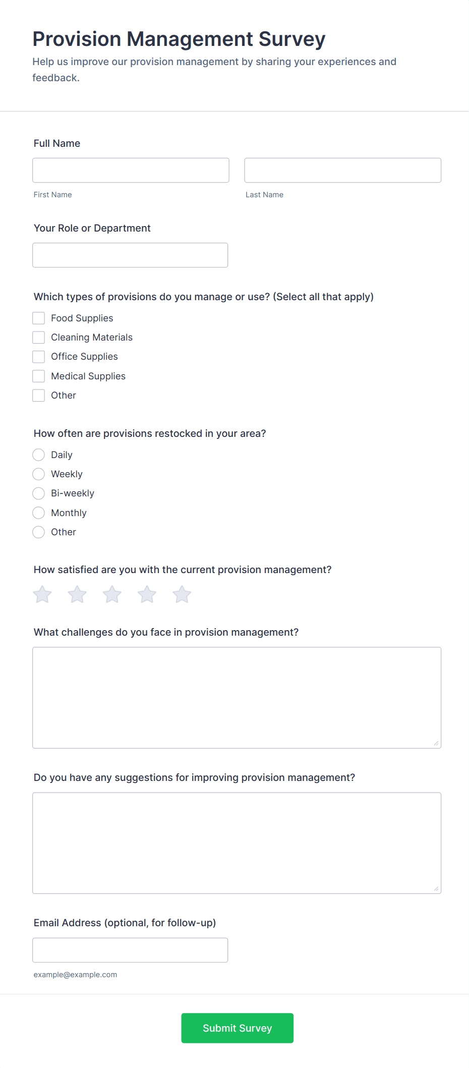 For employee surveys, consider adding anonymity options; for customer surveys, include contact fields if follow-up is needed.