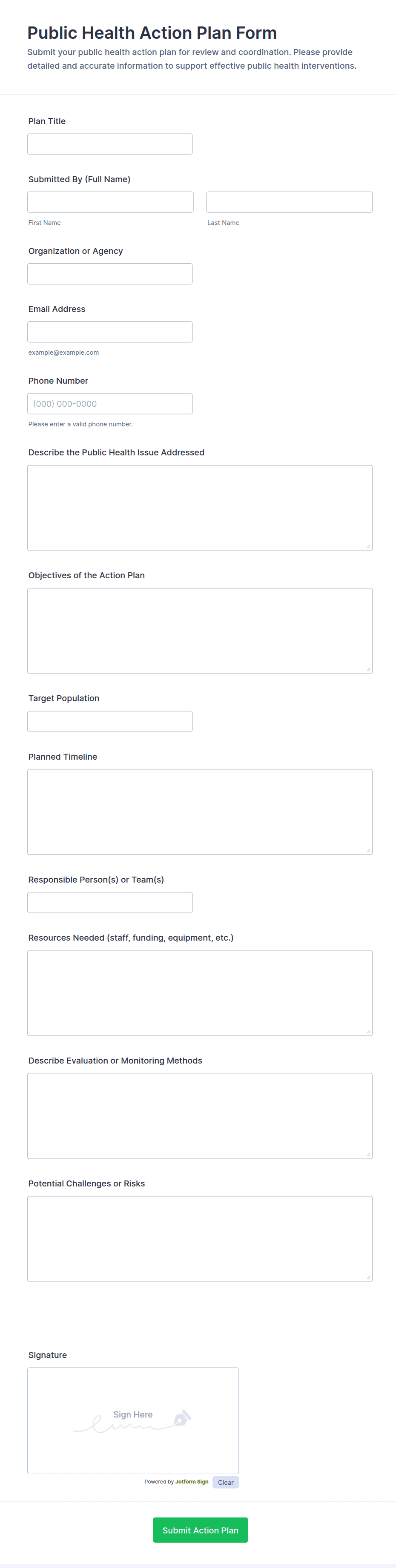 Public administration forms should include privacy notices and consent statements. Jotform offers secure data storage, encryption, and access control features to help protect submitted information.