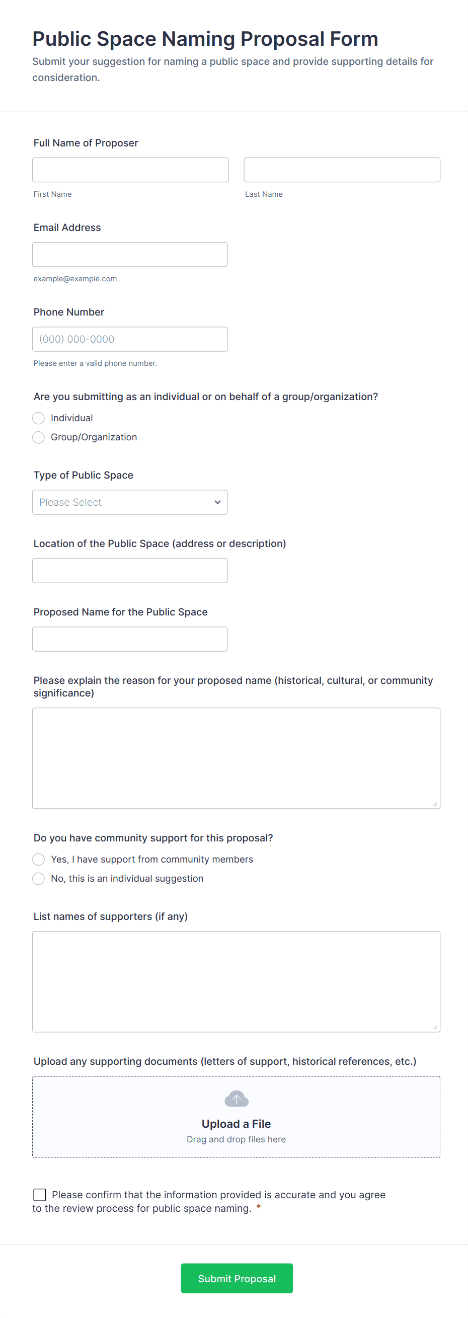 • Share the form via email or public communication channels.