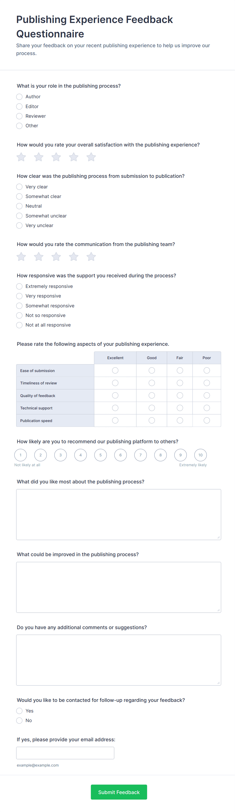 - For customer feedback, include satisfaction ratings and open-ended comment fields.