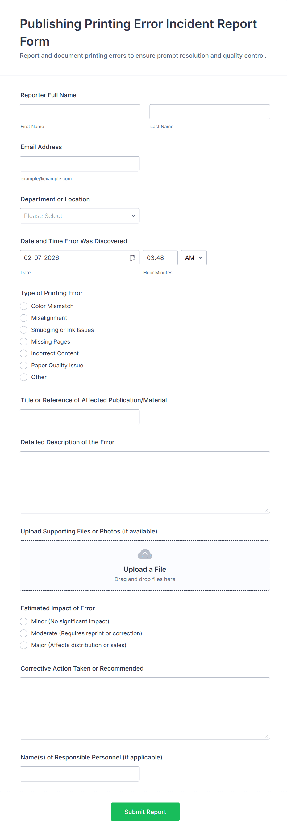 It’s best practice to complete an incident report as soon as possible after the event to ensure accuracy and timely response. Prompt reporting helps organizations address issues quickly and effectively.