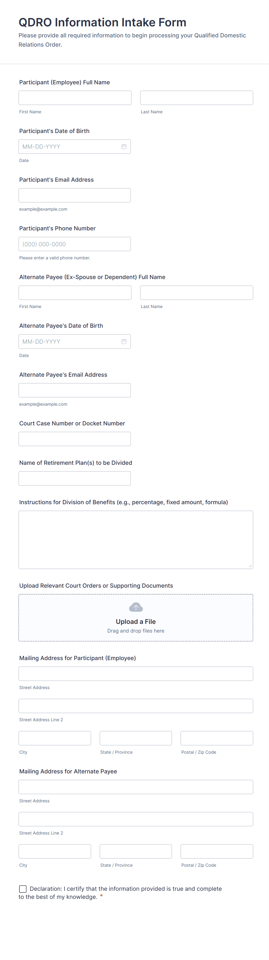 • File upload fields for supporting documents