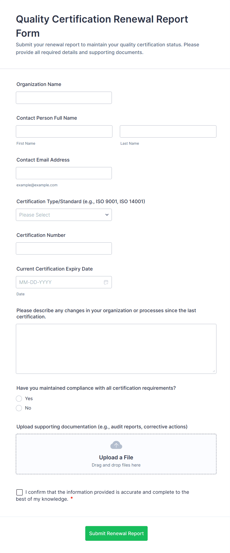 • Conditional Logic: Show or hide fields based on previous answers to streamline the reporting process.