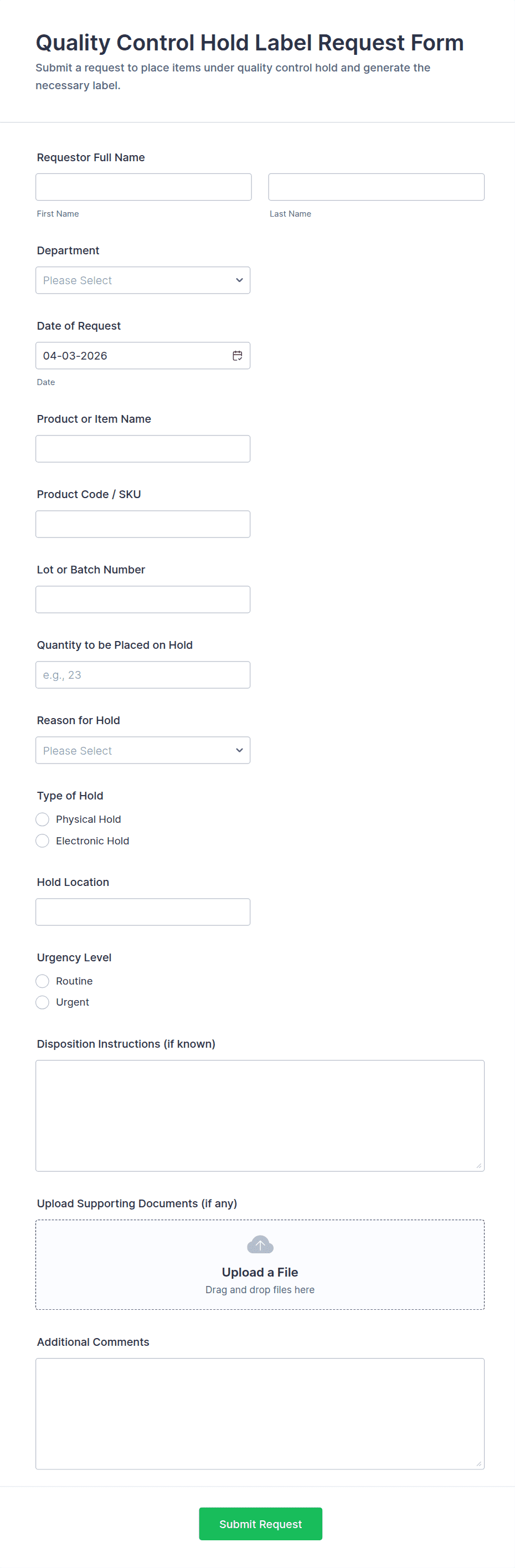 A Quality Alert Form is a form template designed to promote quality awareness and enable rapid response to quality issues in manufacturing, production, or service environments.