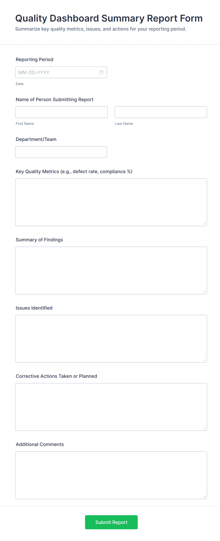 • Conditional Logic: Show or hide fields based on previous answers to streamline the reporting process.