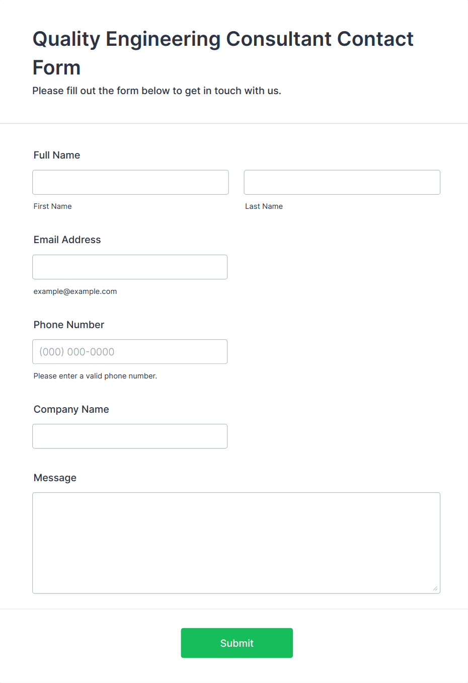 • Sales or quote request forms could ask for company details, budget, and specific service interests.