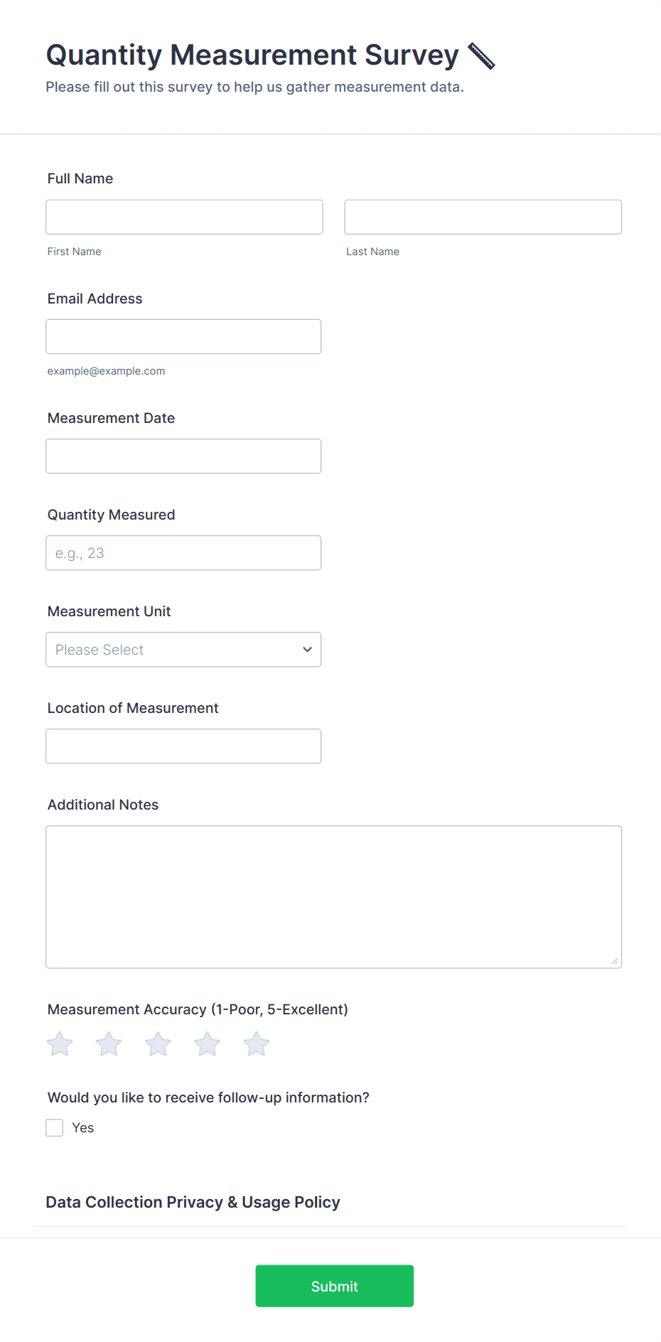 - Short and long text fields for open-ended feedback.