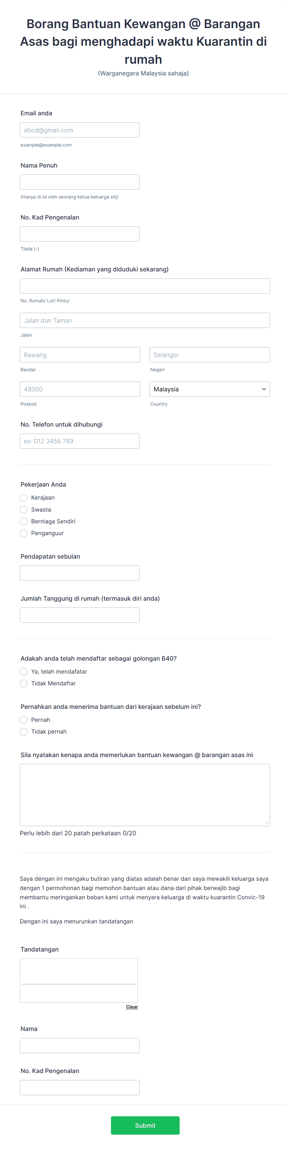 This form is designed to streamline the application process for financial assistance during quarantine in regions where Malay is the primary language. It can be used by individuals who are quarantined and need financial aid to cover their living expenses.