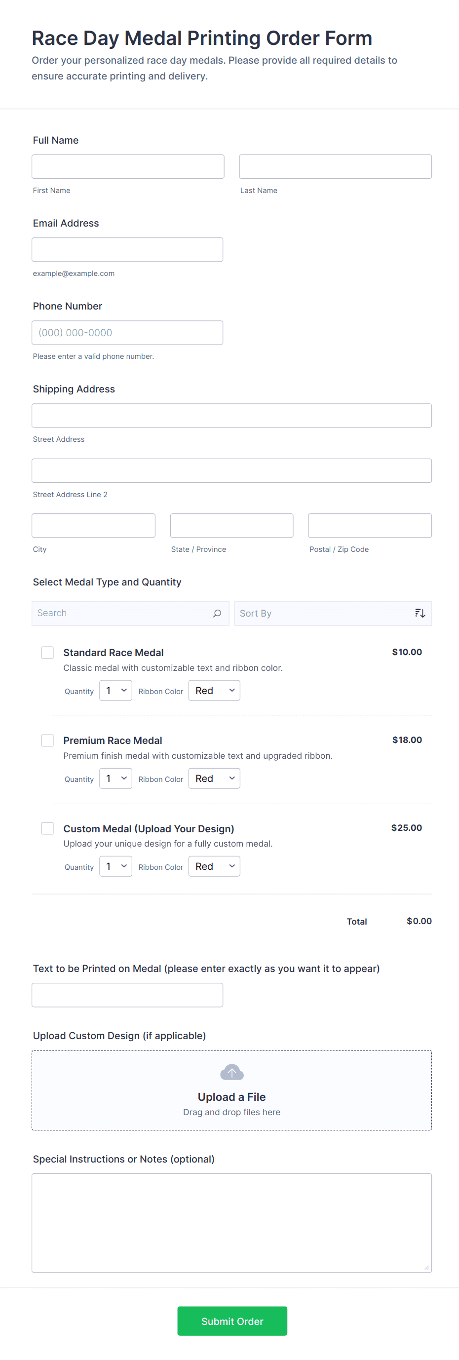 Product order forms are essential tools for businesses and organizations that need to collect orders for physical or digital products online. These forms streamline the process of gathering customer information, product selections, quantities, payment details, and shipping addresses, making it easy to manage sales and inventory. Product order forms can be used in a variety of scenarios, such as e-commerce websites, small businesses selling handmade goods, restaurants offering online ordering, event merchandise sales, or even non-profits collecting orders for fundraising items. Their flexibility allows them to be tailored for single-product checkouts, multi-item catalogs, pre-orders, or subscription-based offerings.