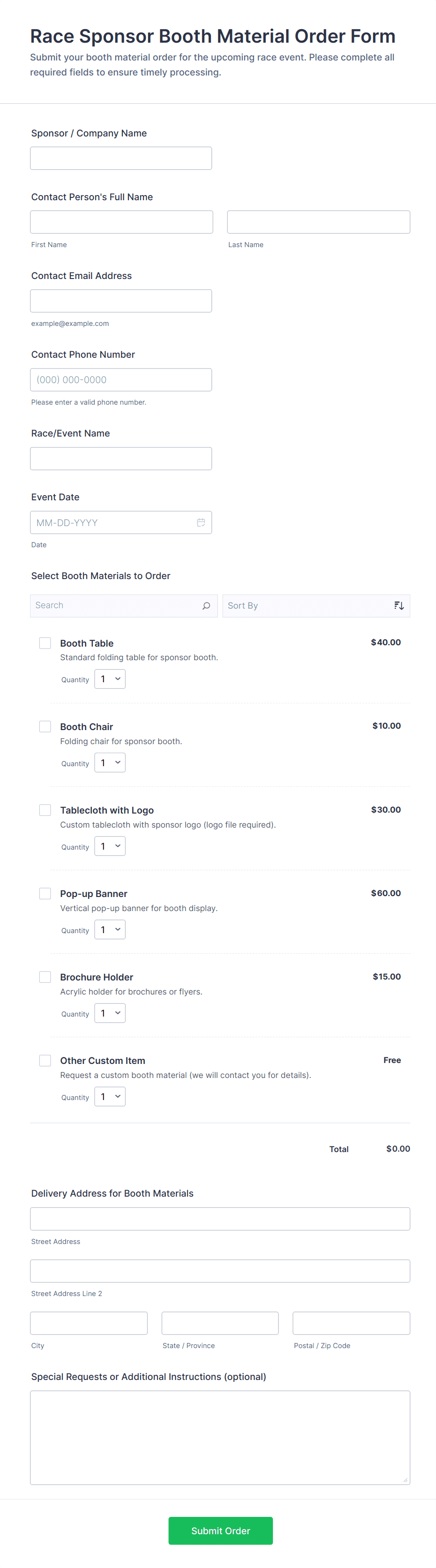 By following these steps, you can create a Material Order Form that streamlines procurement, reduces errors, and keeps your material management process organized and efficient.