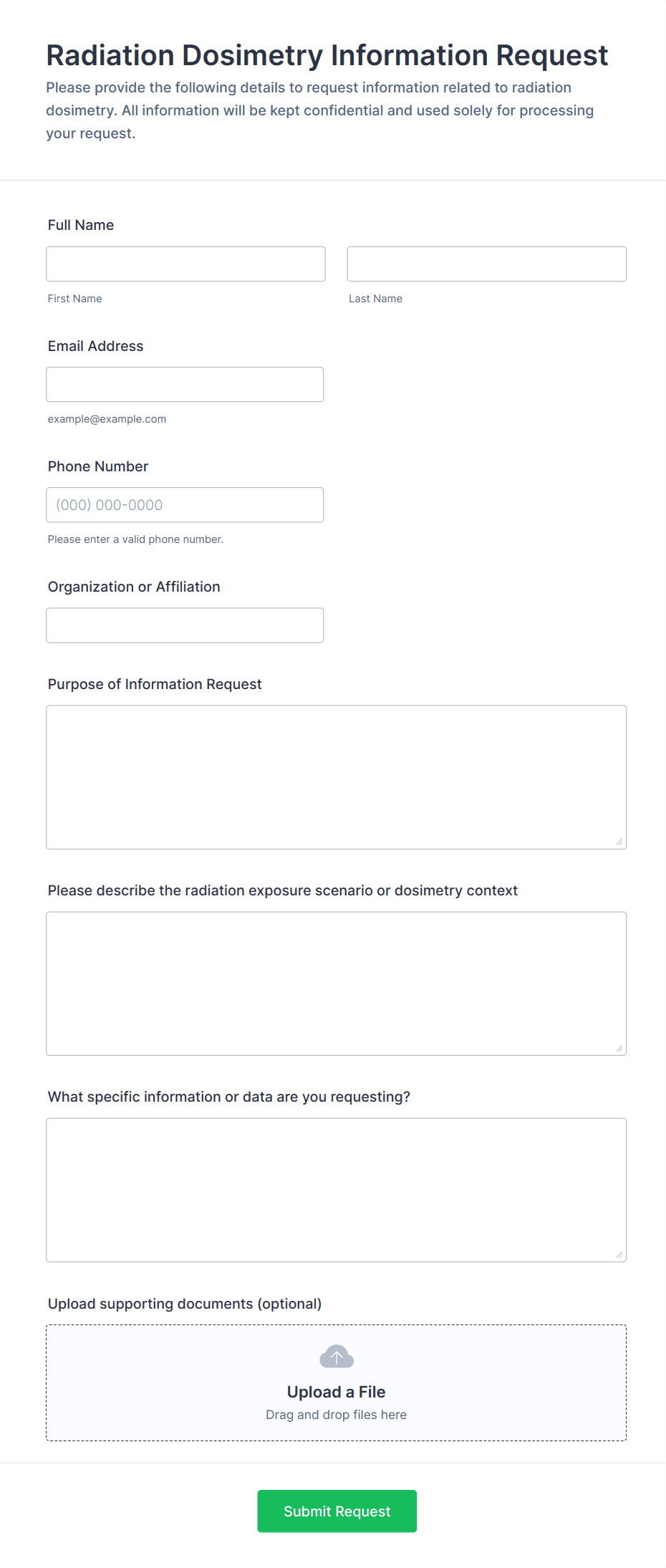• Content and Fields: The fields included in the form will differ based on the use case. For example, a customer inquiry form may require contact details and a description of the issue, while a research data request form might need institutional affiliation and project details.