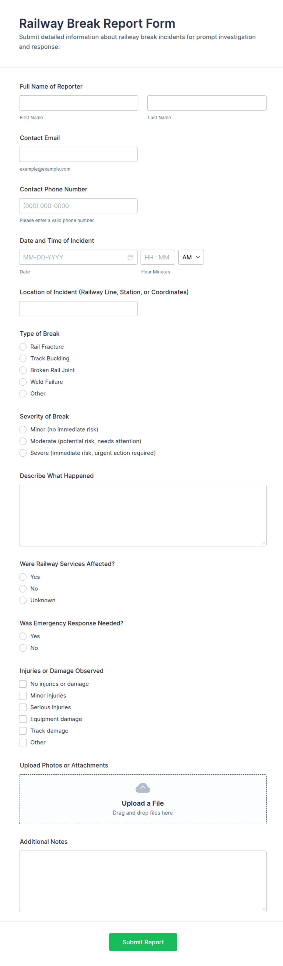 Include file upload fields for photos of the scene, damages, documents, or witness statements to reduce follow-up.
