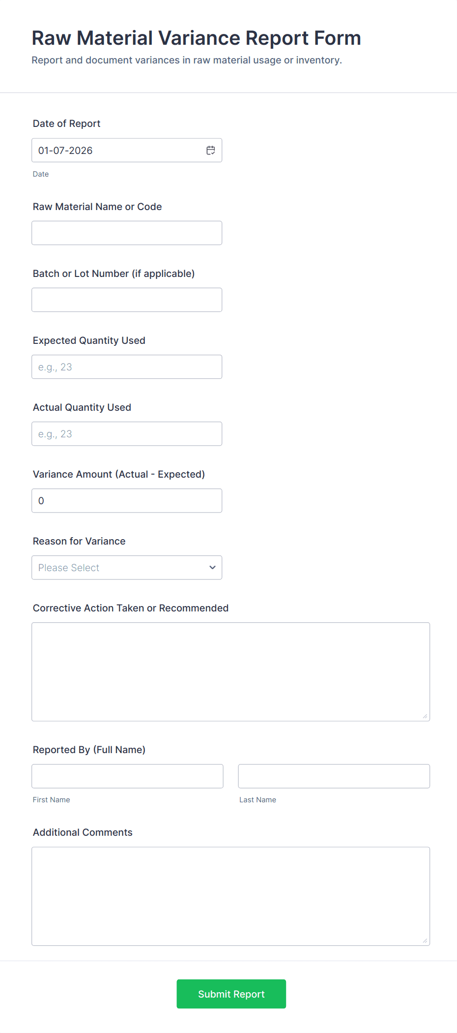 • Conditional Logic: Show or hide fields based on previous answers to streamline the reporting process.