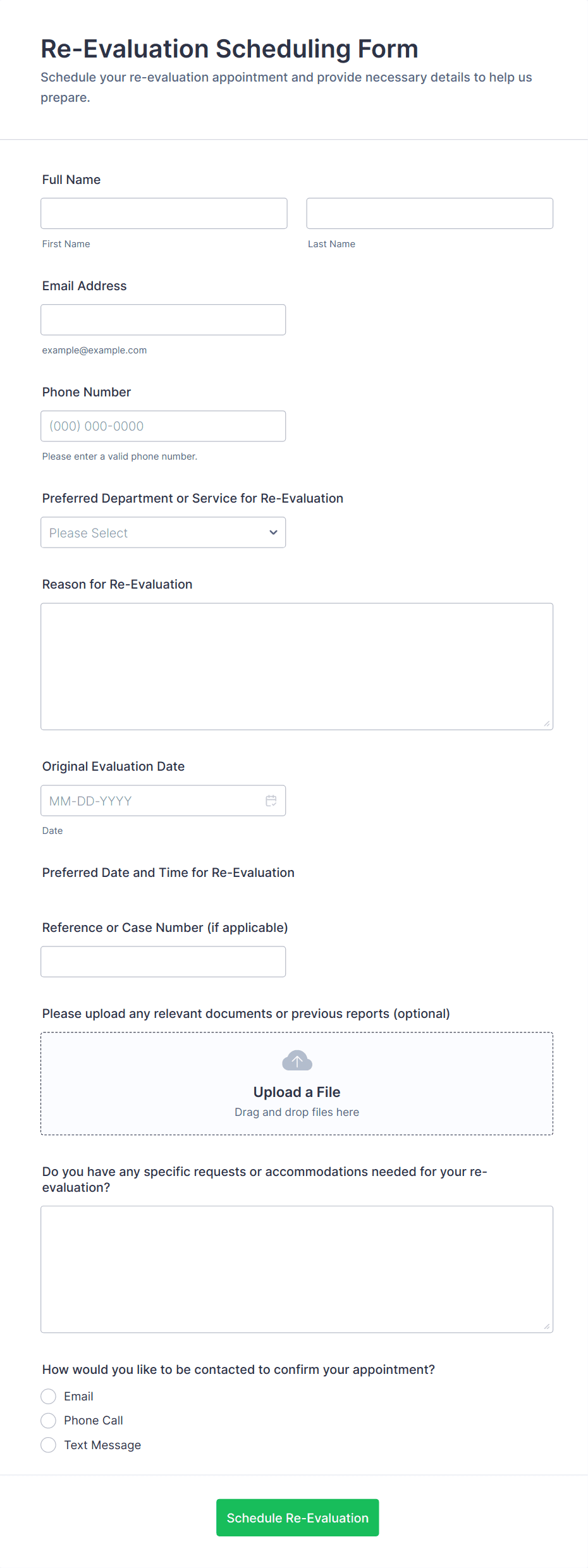 • Medical Appointments: May require fields for insurance information, reason for visit, and medical history.