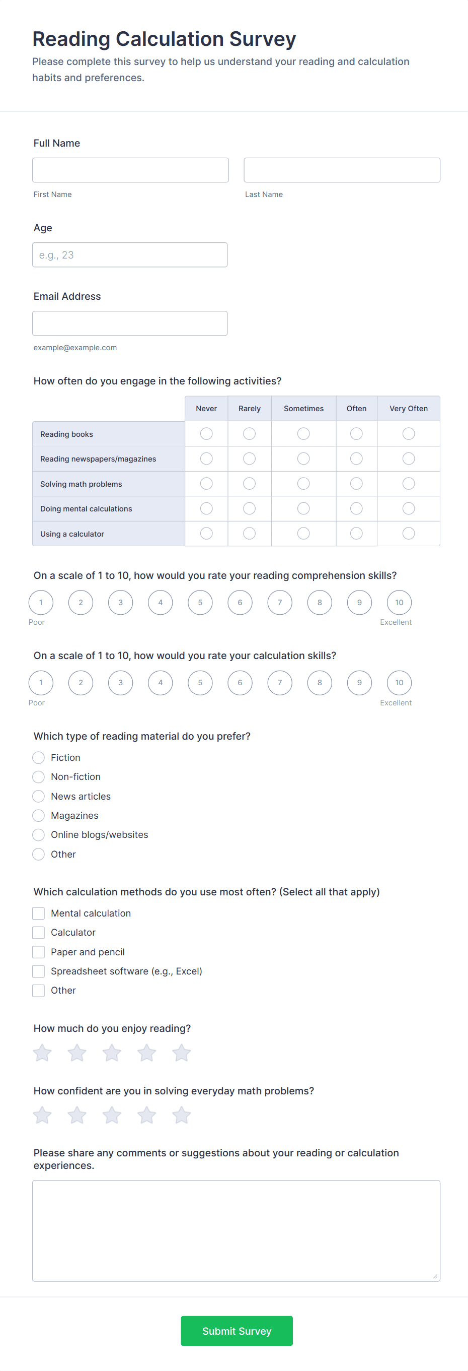 Creating an effective education survey with Jotform is straightforward and highly customizable, allowing you to address specific needs for students, teachers, parents, or staff. Whether you’re seeking feedback on a course, evaluating teaching performance, or assessing campus climate, Jotform’s platform provides all the tools you need for a professional and efficient survey process.