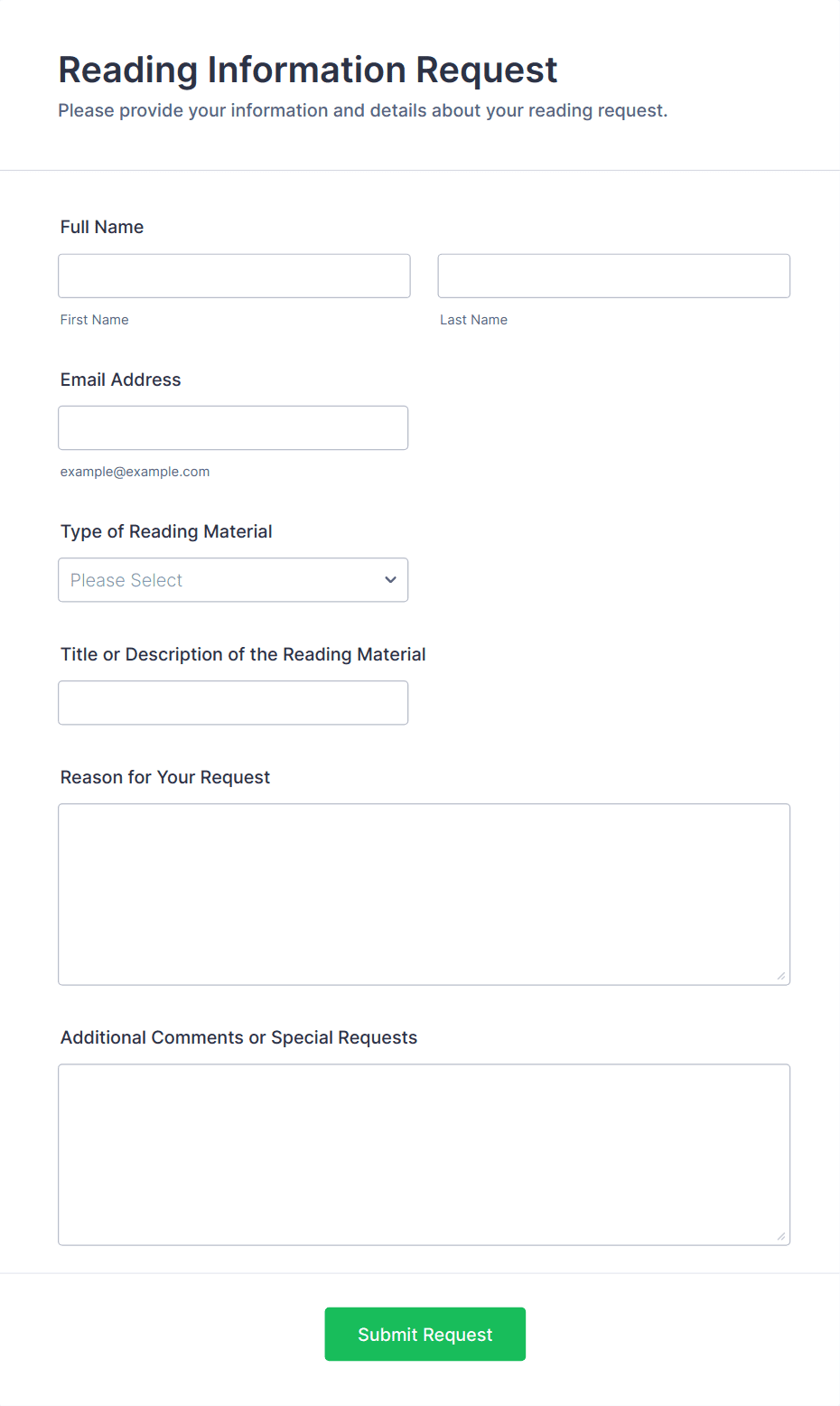 Information request forms are digital tools designed to collect specific details from individuals or organizations for a variety of purposes. These forms are commonly used by businesses, educational institutions, healthcare providers, government agencies, and nonprofits to gather essential information such as contact details, service inquiries, feedback, or documentation requests. Whether you need to process customer queries, handle support tickets, collect research data, or manage internal requests, information request forms streamline the process by providing a structured and efficient way to capture and organize incoming data.