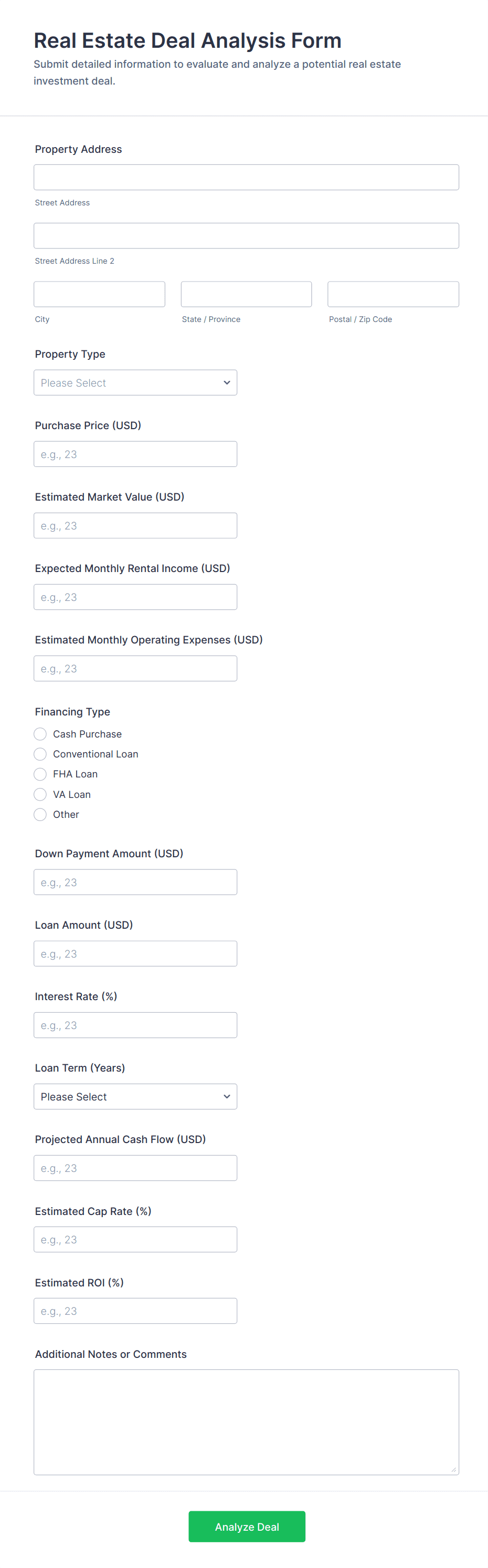 3. What information is typically collected in a real estate form?