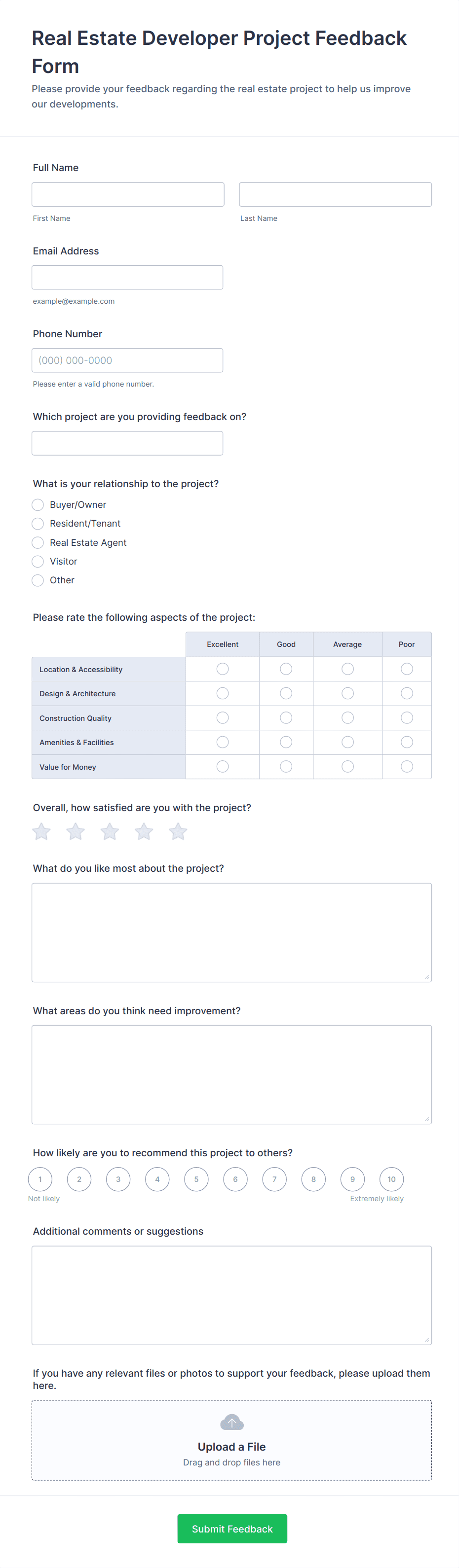 Real estate agents, brokers, property managers, landlords, leasing offices, and real estate agencies can all benefit from using feedback forms.