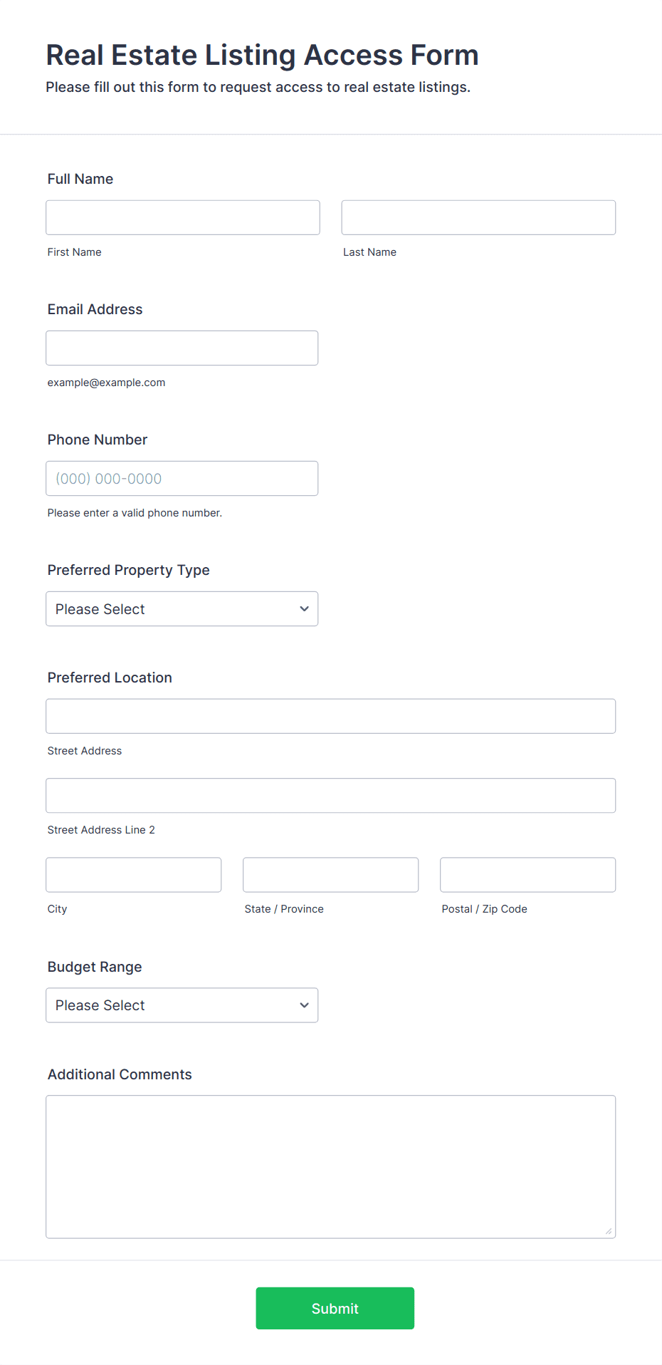 Real Estate Listing Form