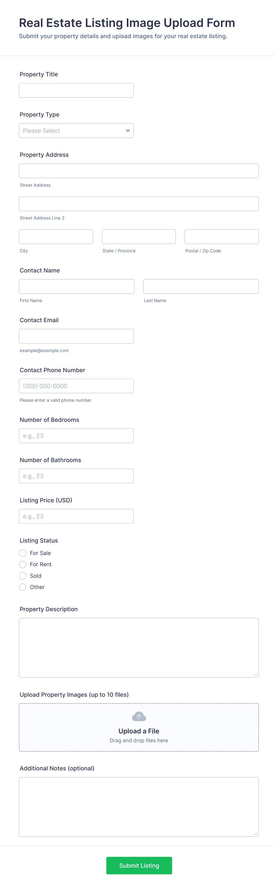 Real Estate Listing Form