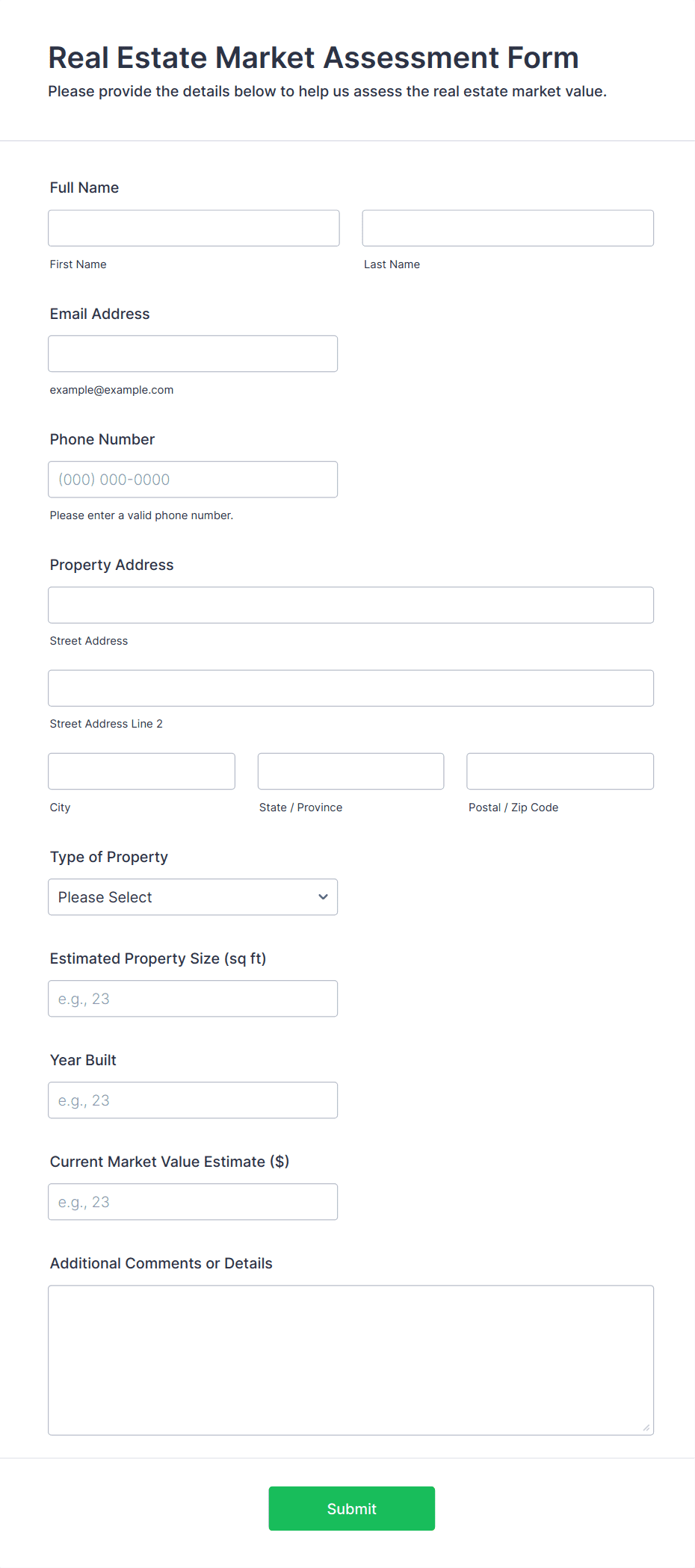 3. What information is typically collected in a real estate form?