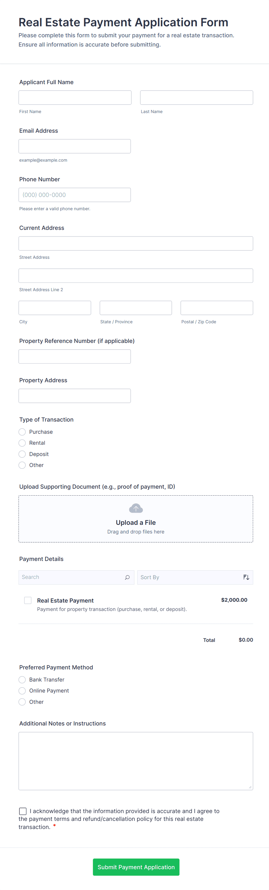 Payment Form Template
