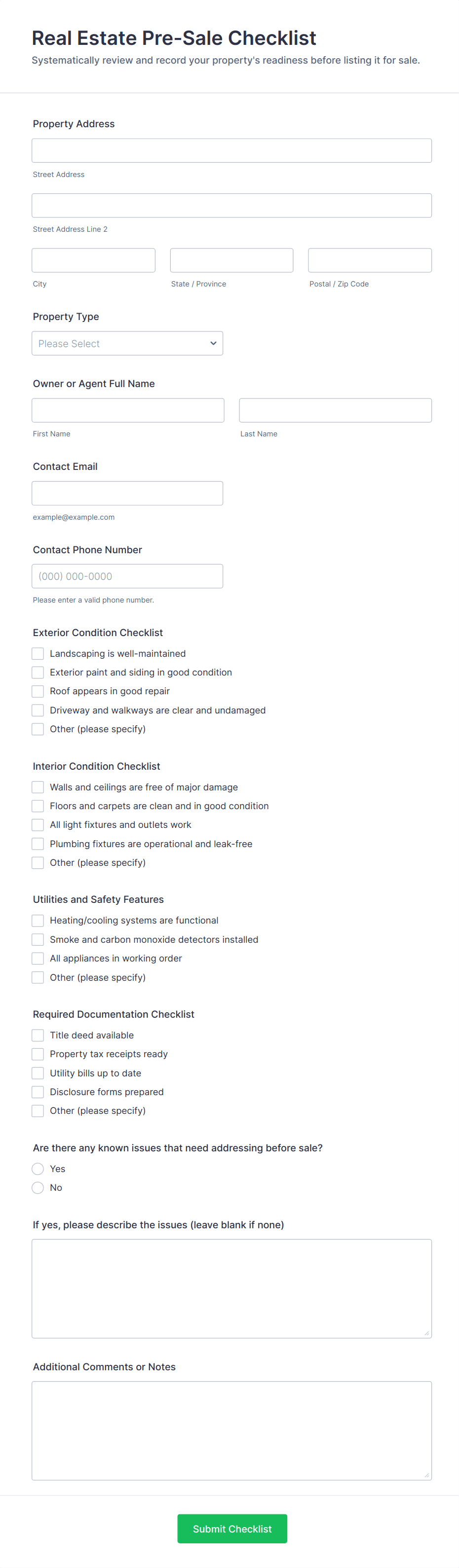 Real Estate Listing Form