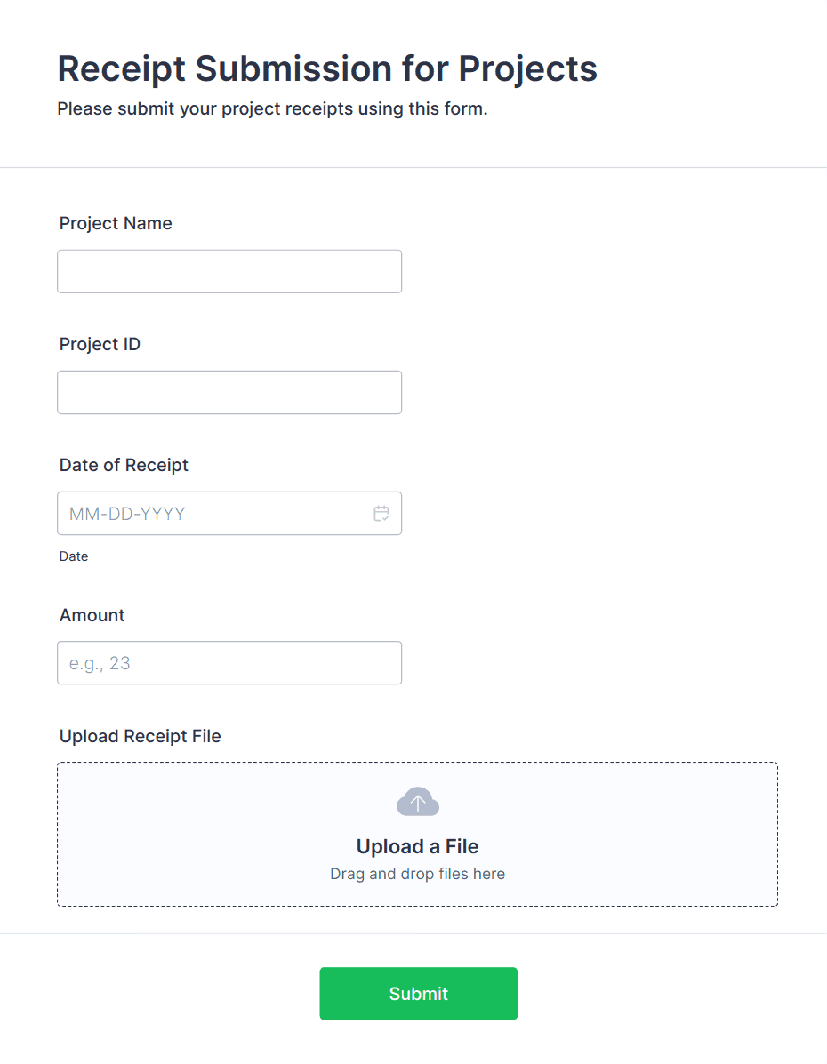 In addition to files, these forms can collect personal details, project information, comments, and any other data relevant to the submission.