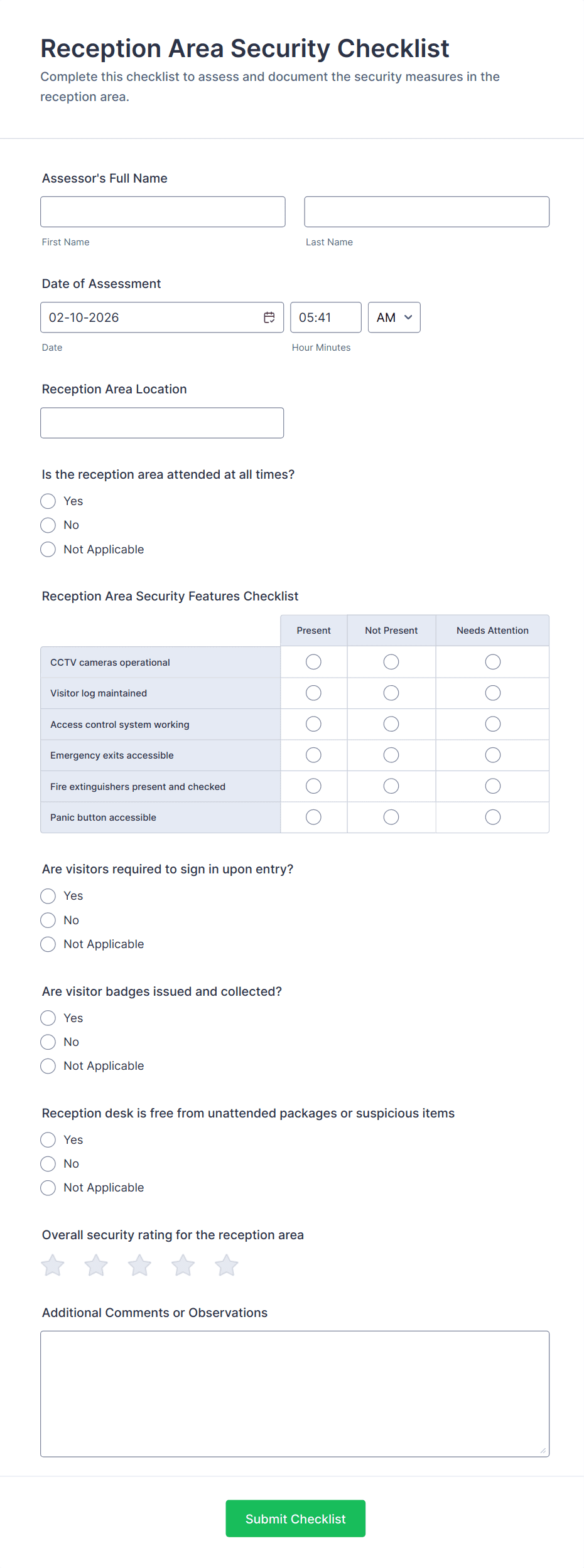 Add dropdowns for buildings, rooms, systems, or roles. Make access level fields structured so approvals are consistent.