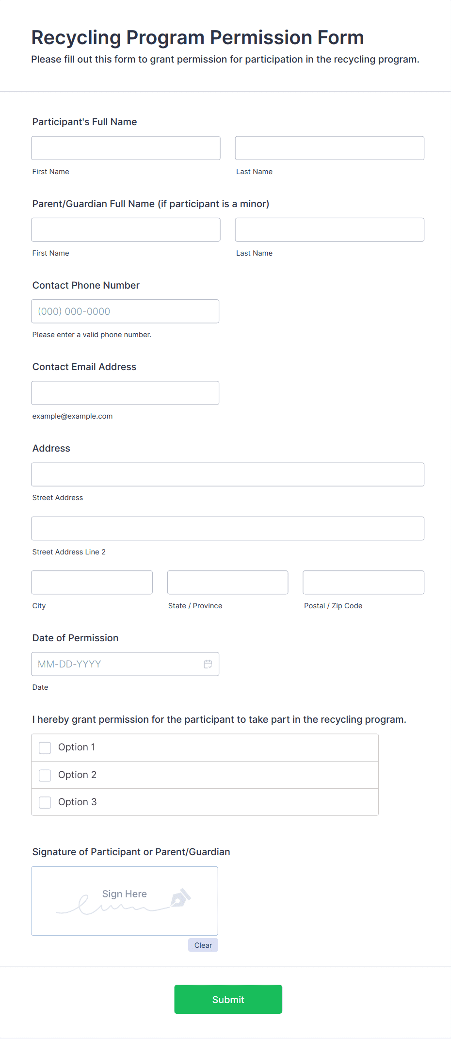 Get permission from parents and guardians to let their children participate in your program. Free parental consent form. Easy to customize and embed. No coding required.