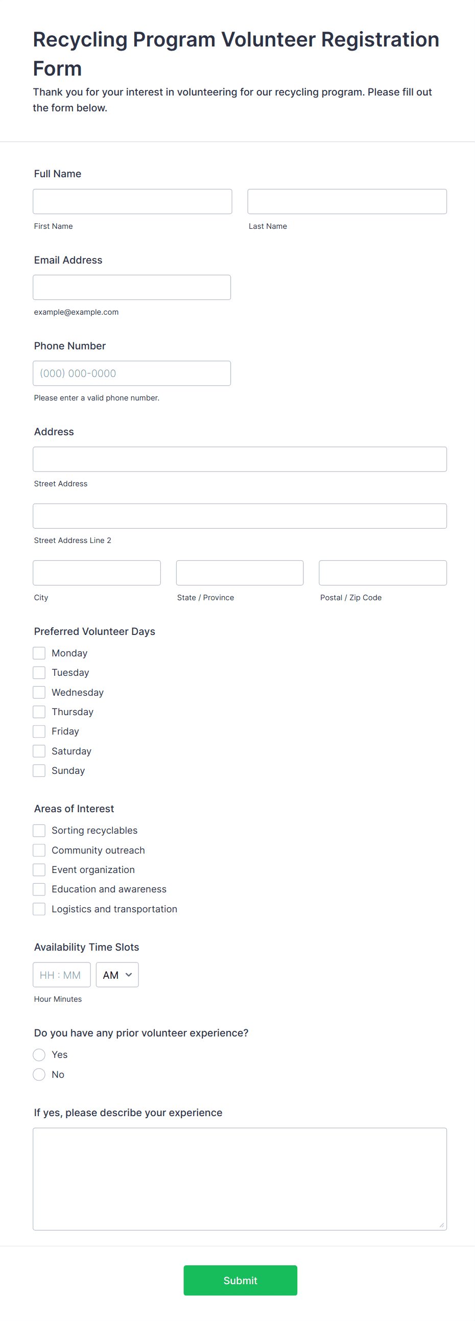 • Ongoing Program Enrollment: Nonprofits or community centers use forms to register volunteers for recurring programs, capturing long-term commitment and skill sets.
