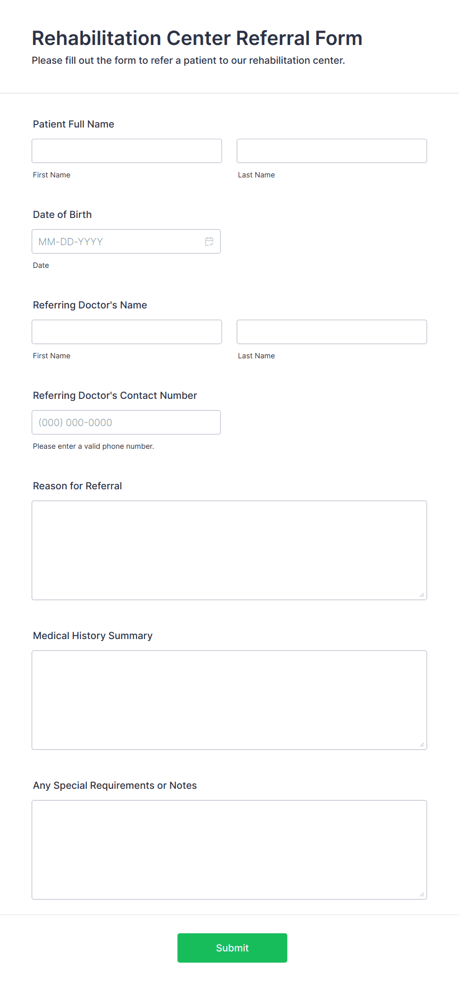 Referral forms are essential tools used to collect and manage information when one party recommends a person, service, or business to another. These forms streamline the process of gathering key details about the referred individual or entity, the referrer, and the context of the referral. Common use cases include employee referral programs, patient referrals in healthcare, client referrals in legal or financial services, and customer referrals in sales and marketing. By standardizing the referral process, organizations can ensure that all necessary information is captured efficiently, reducing miscommunication and speeding up follow-up actions.