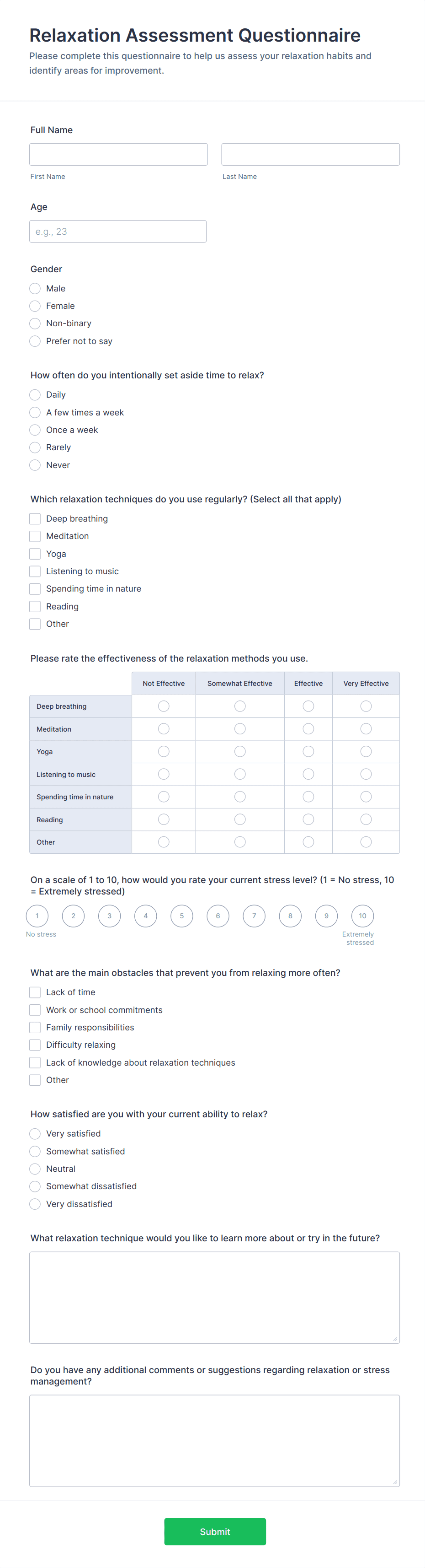 - Some questionnaires require conditional logic to show or hide questions based on previous answers.