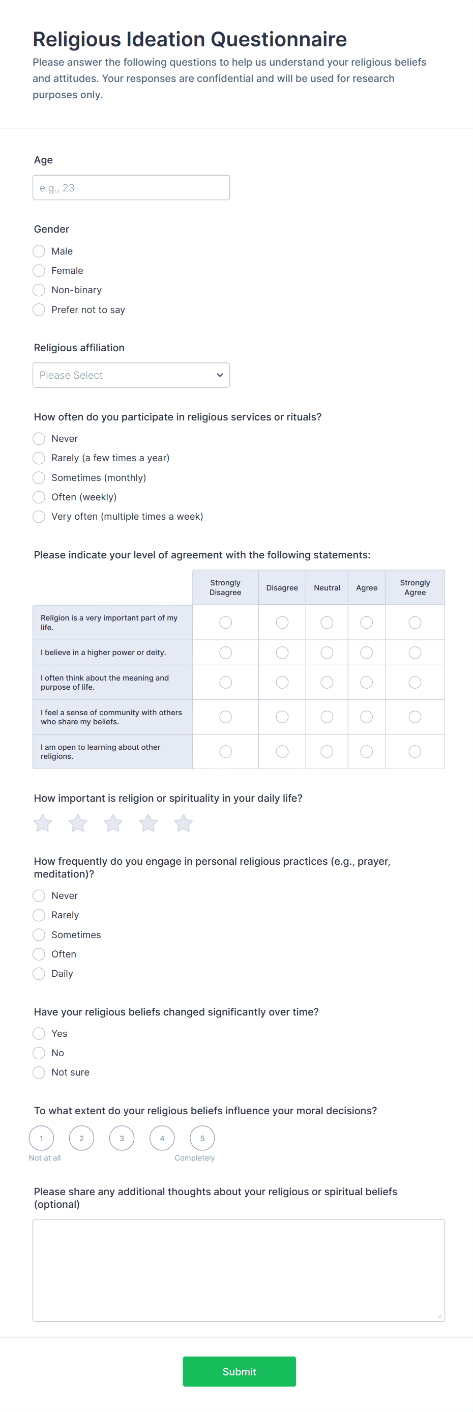 Conduct mental health assessments with this free survey template for businesses, schools, and more. Easy to customize and fill from any device. No coding.