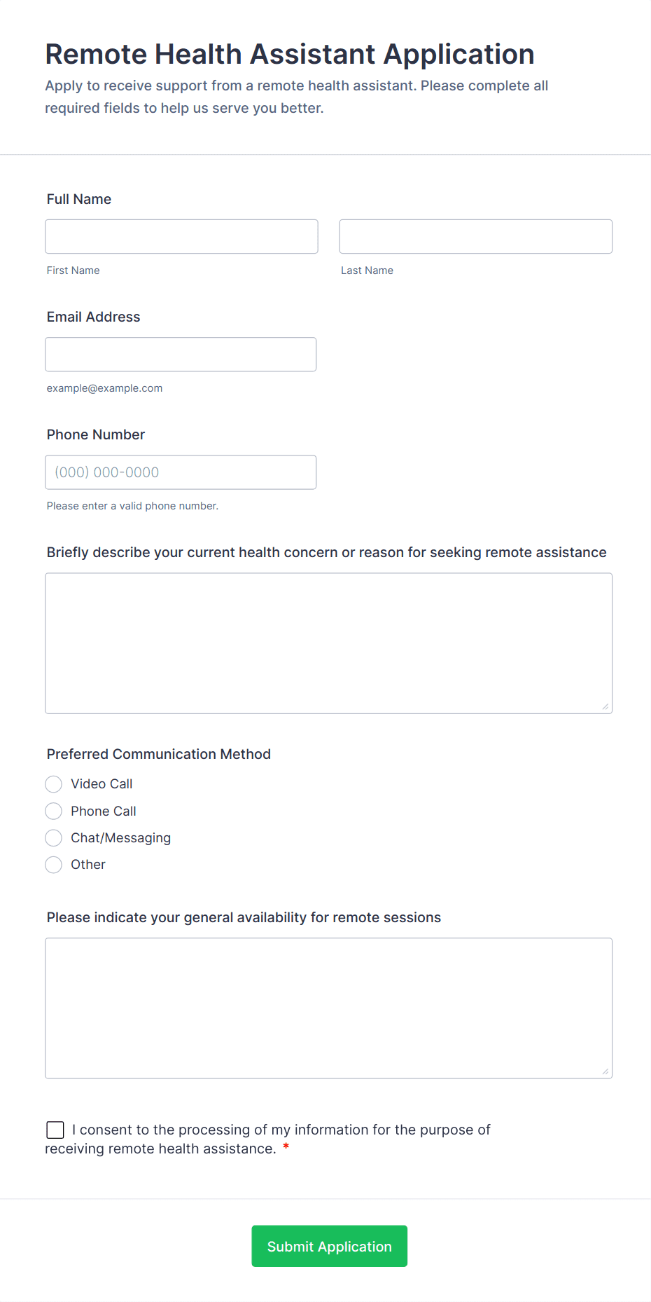 In summary, telehealth forms can be tailored to fit a wide range of remote healthcare scenarios, with content and structure varying based on the specific workflow and information required.