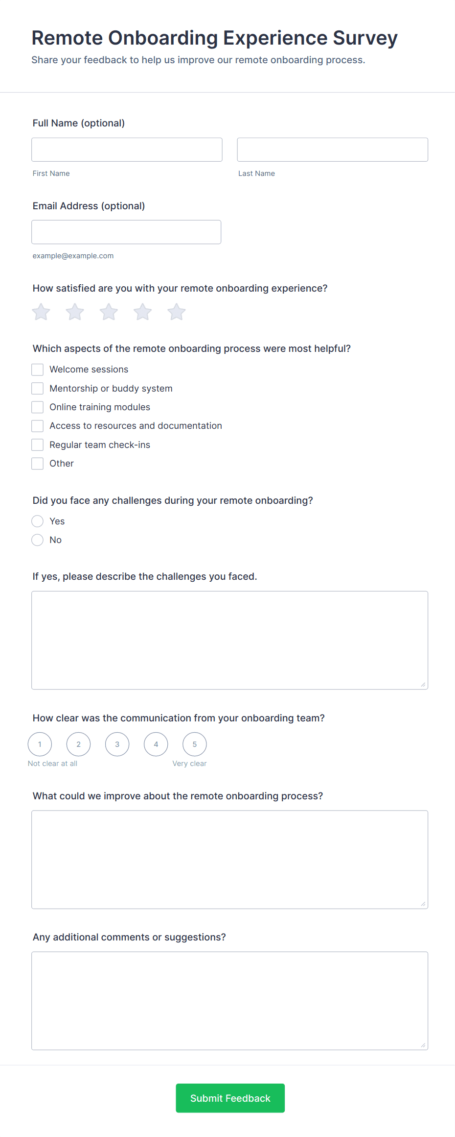 - For event or volunteer surveys, add questions about logistics, support, and overall experience.