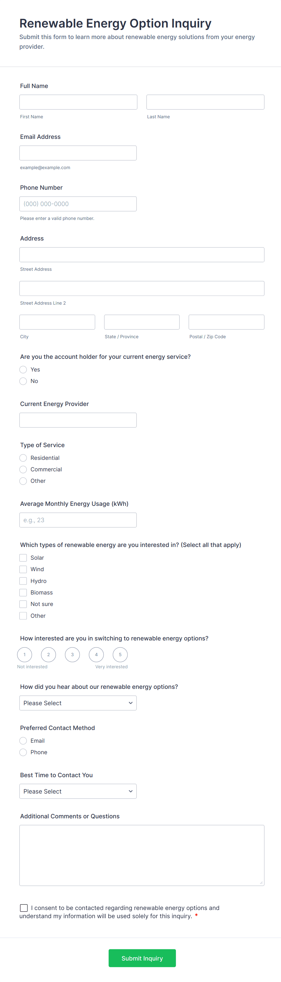 3. What information should be included in an inquiry form?
