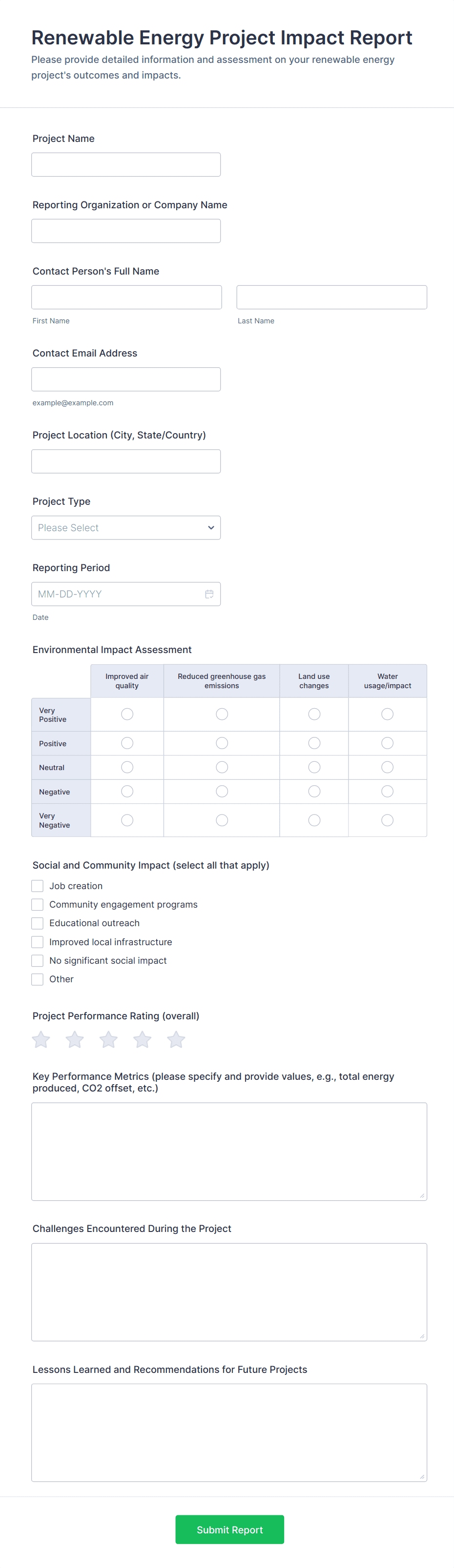 • Conditional Logic: Show or hide fields based on previous answers to streamline the reporting process.