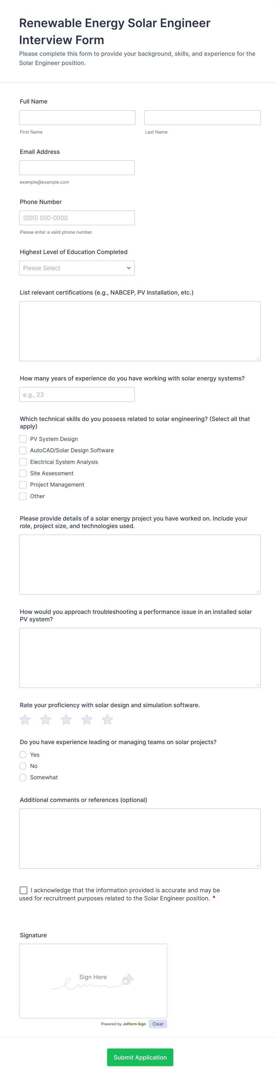 An interview form is a structured document or digital tool used to collect information from individuals during interviews. It standardizes the questions and response formats, ensuring consistency and efficiency in data collection.