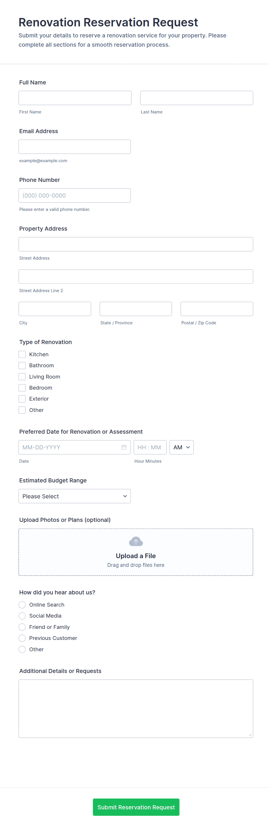 Generate estimates for your construction business online. Easy-to-customize form template. Fill out on any device. Turn submissions into PDF estimates automatically.