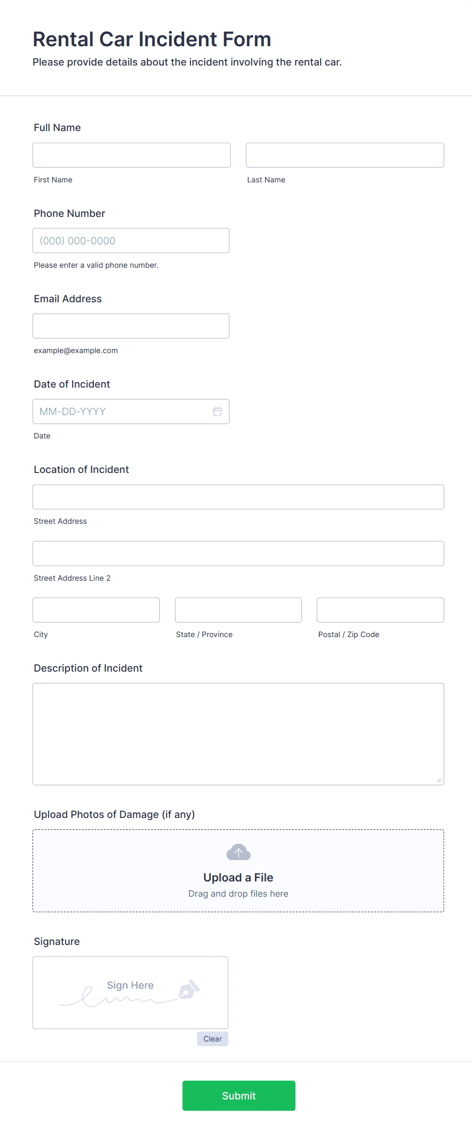 An automotive form is a digital document used by automotive businesses to collect, manage, and process information related to vehicles, customers, services, rentals, and more.