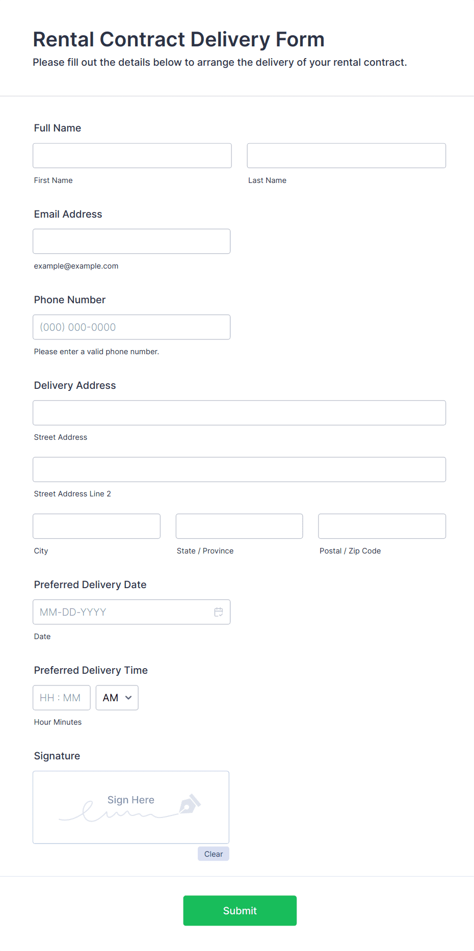 - Service Bookings: Forms might require date/time pickers, service options, and customer contact details.