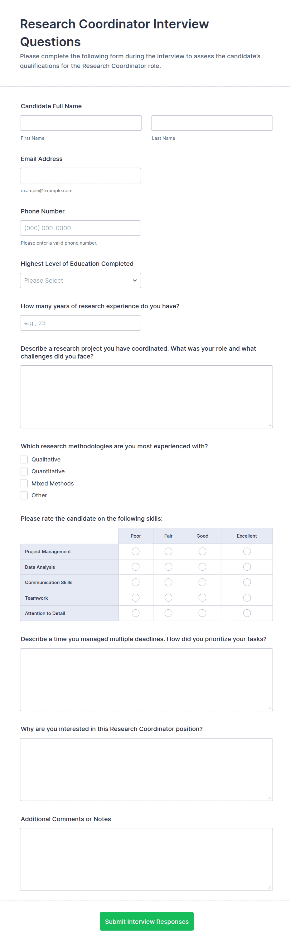 Responsive Interview Questionnaire Form
