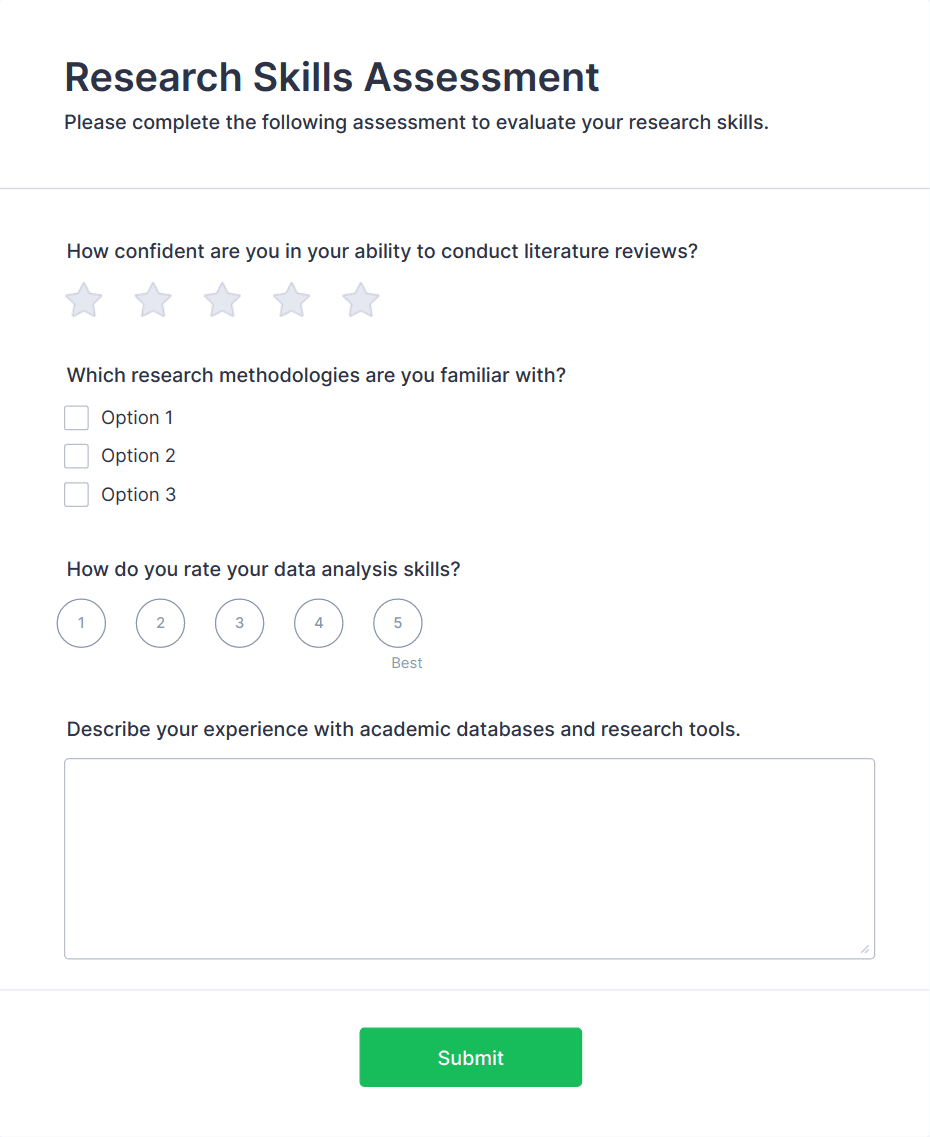 By following these steps, you can create a tailored assessment form that meets your specific needs, streamlines data collection, and provides actionable insights for your organization or project.