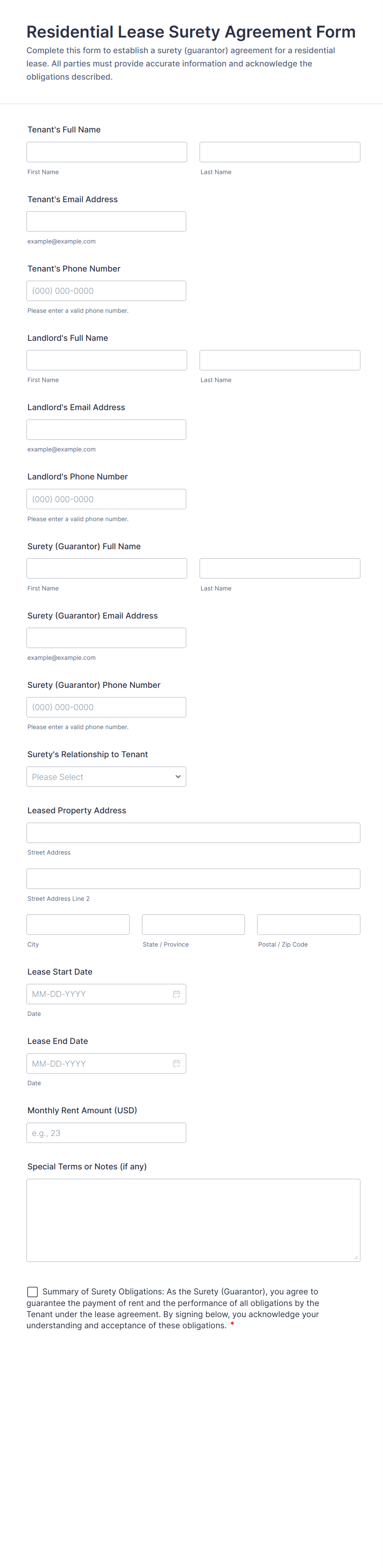 The Property Rental Agreement Intake Form helps landlords collect essential tenant information for rental applications, ensuring a smooth rental process and efficient data collection.
