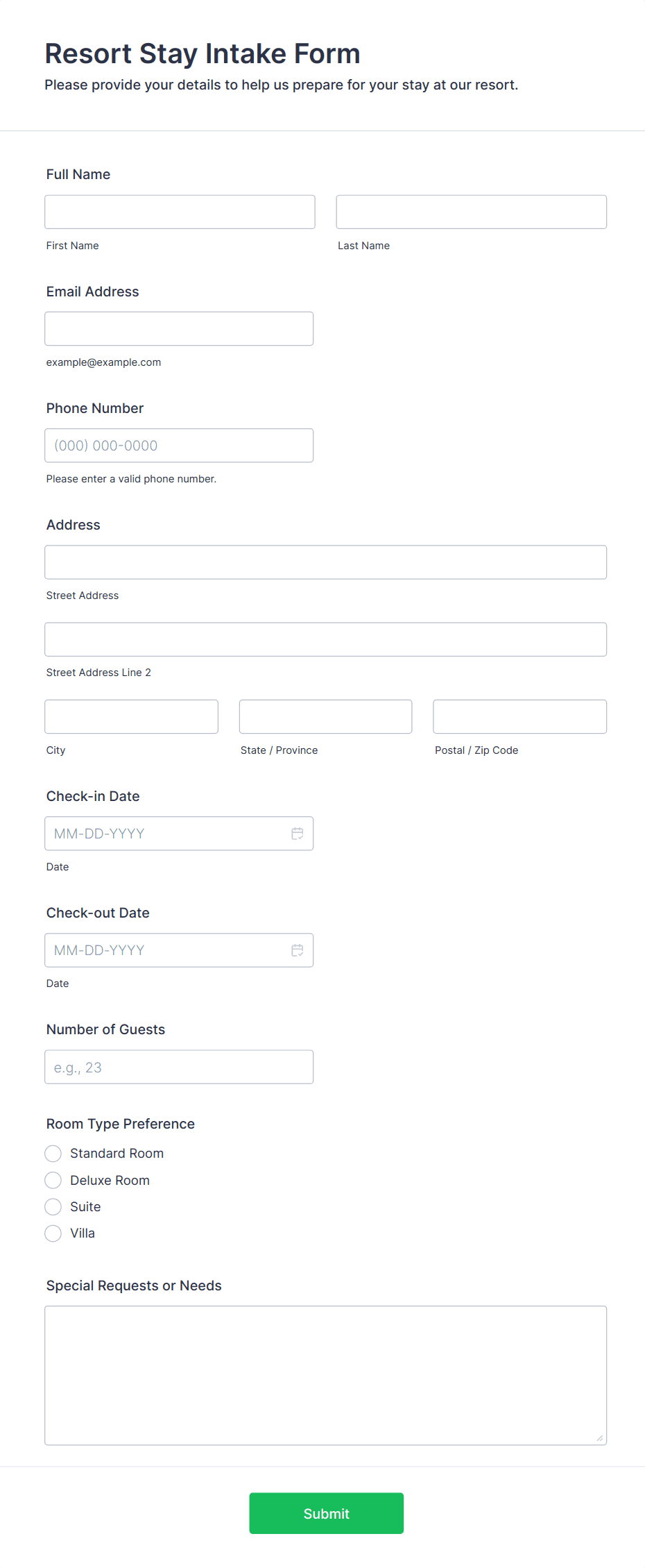 Boost bookings for your hotel with a free, online Hotel Booking Form. Quickly customize and embed in your website. Sync to apps, accept payments, and more!