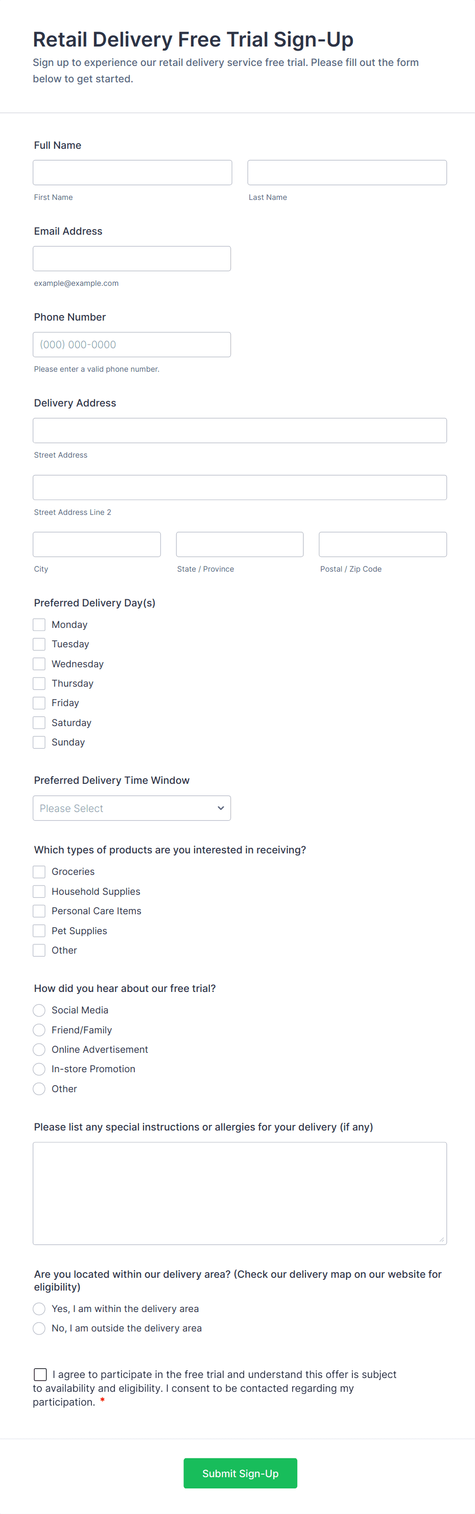 - Newsletter Sign Up: Typically requires only name and email, with optional interest checkboxes.
