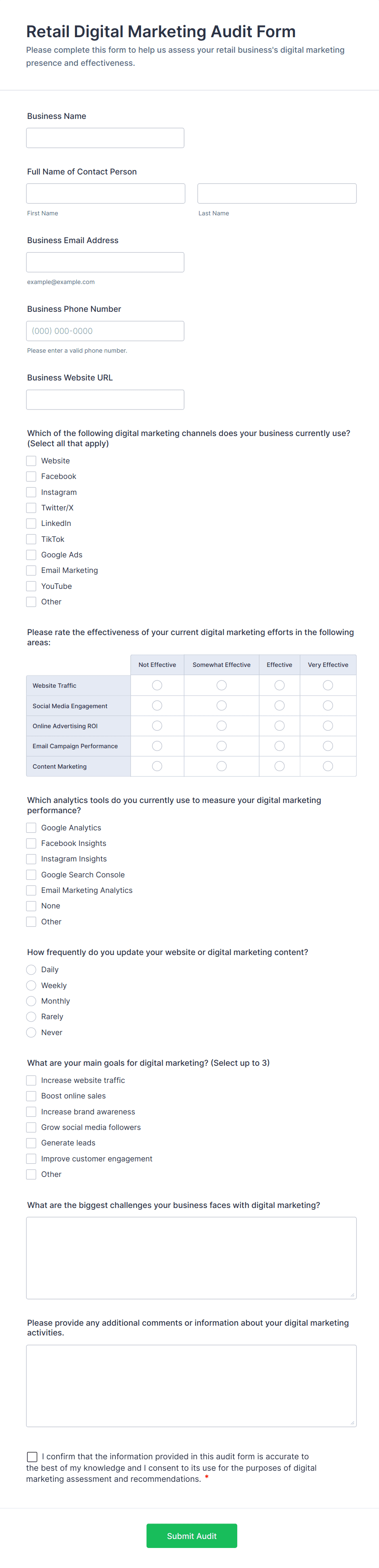 Store Audit Checklist Form