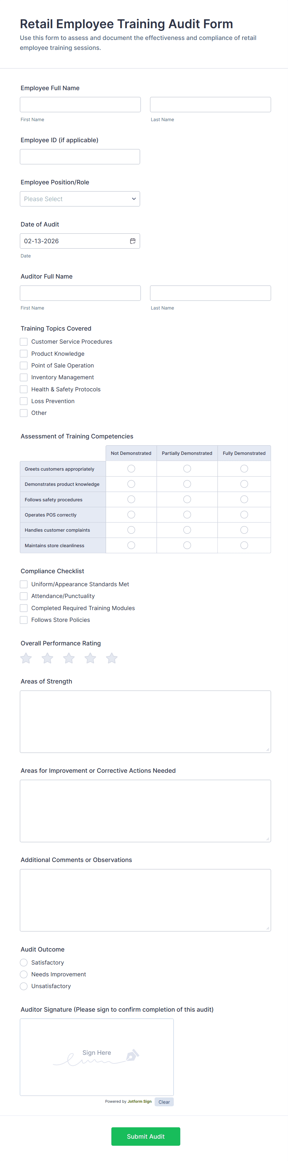 Document employee operator training completion and sign-off with the Operator Training Sign-Off Form for consistent internal data collection, supervisor review, and reliable form submission records in Jotform.